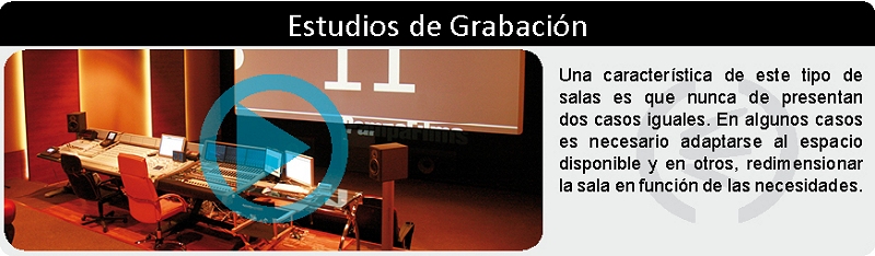 Instalaciones llave en mano para medios de comunicación audiovisuales, recintos para platós de T.V., emisoras de radio, salas de doblaje y postproducción, salas de música y home cinema. |